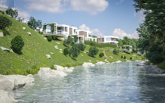 Коттеджный Поселок У Реки — это эксклюзивный коттеджный поселок, состоящий из 22 домов бизнес-класса, а также лаунж-зоны и целого футбольного поля. Комплекс имеет уникальное расположение вдоль горной реки Дагомыс, в спокойном и безопасном районе, с видом на лес и горы. Расстояние до моря составляет 7,9 км.