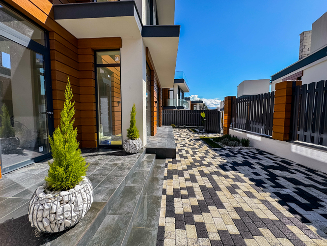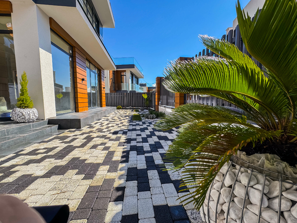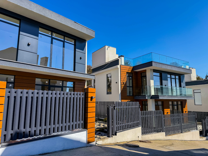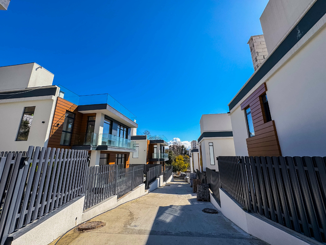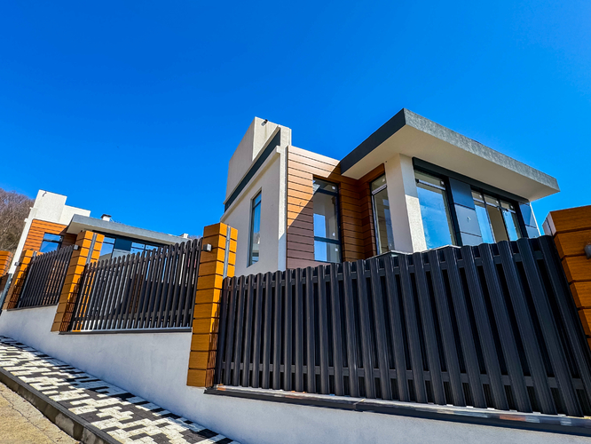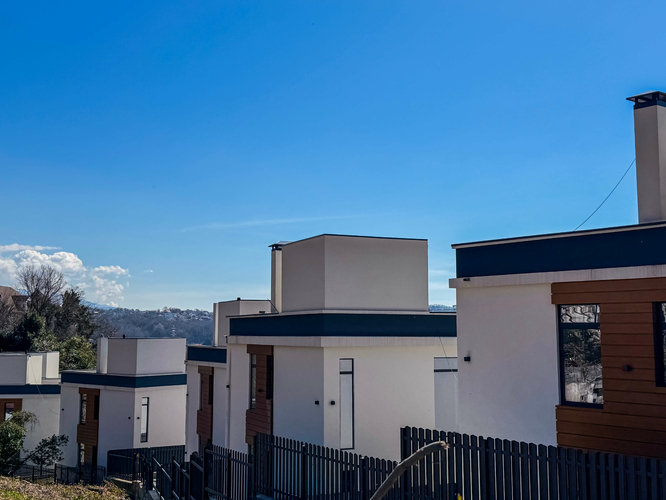 Архитектура домов выполнена в самом востребованном стиле — хайтек. Дома расположены каскадом, из каждого дома открывается вид на горы. Фундамент выполнен на сваях, все работы ведутся профессиональной строительной компанией с соблюдением всех норм строительства и геодезии.