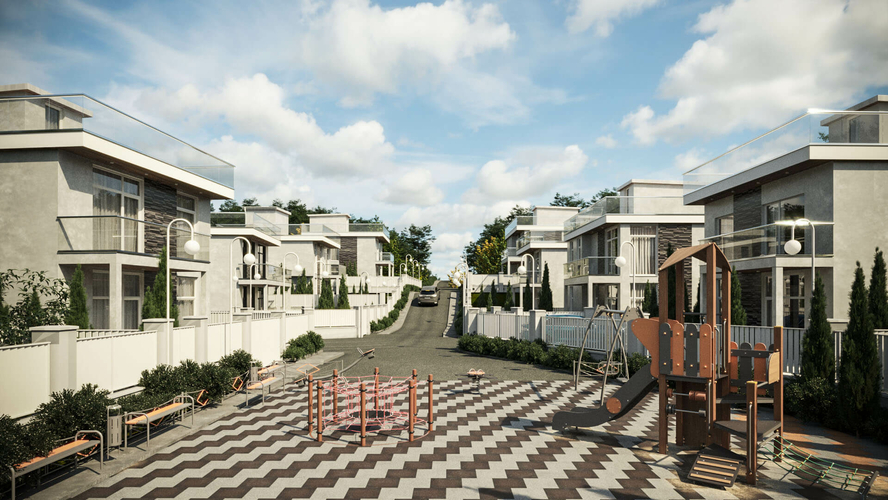 Коттеджный комплекс состоит всего из 9 домов, что делает его клубным поселком — уютным местом для небольшого числа жителей. Территория коттеджного поселка закрыта от посторонних.